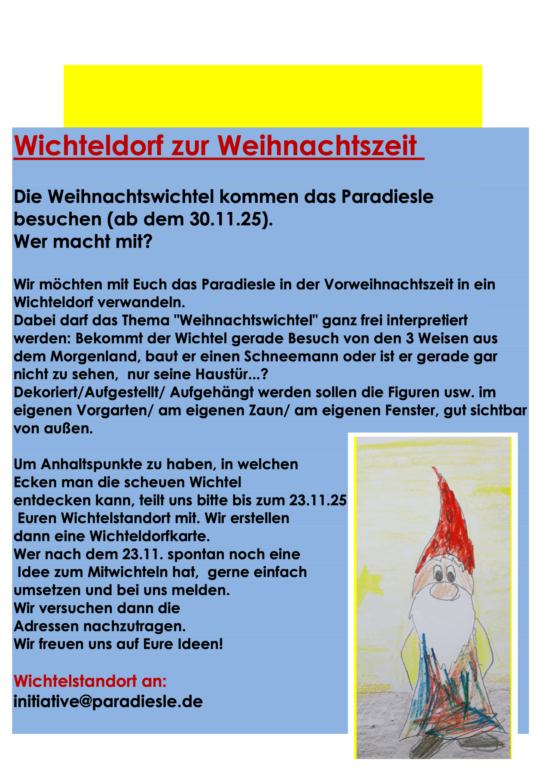 Die Initiative Paradiesle ist eine Gruppe engagierter Anwohner*innen, die es sich zum Ziel gesetzt hat, die Lebensqualität in unserem Wohngebiet zu verbessern.